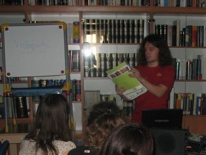 Gradska knjižnica “Franjo Marković” objavila je tijekom lipnja poziv na malu ljetnu školu esperanta, koju prema Zagrebačkoj metodi, poznatom hrvatskom udžbeniku esperanta prevedenom na više od 25 svjetskih jezika, vodi Križevčanin Krunoslav Puškar, član Studentskog esperanto kluba u Zagrebu. Ova, po svemu sudeći prva radionica o osnovama ovog umjetnog jezika u Križevcima od one jednodnevne održane 2006. na Culture Shock Festivalu, izazvala je veliko zanimanje sugrađana svih dobi. Tijekom ovog tjedna tečaj u dvije grupe polazi dvadesetak sugrađana, a večeras ih očekuje provjera znanja i podjela dvojezičnih priznanja Hrvatskog saveza za esperanto.