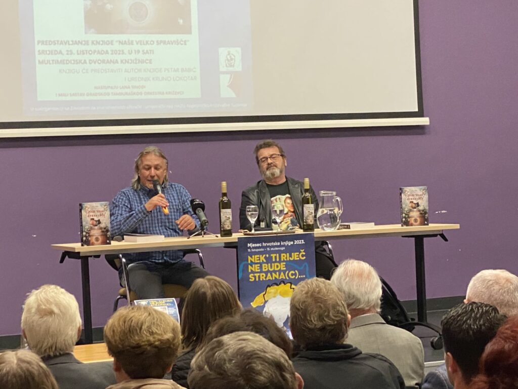 U prepunoj Multimedijalnoj dvorani Gradske knjižnice „Franjo Marković“ u srijedu, 25. listopada 2023. navečer u Križevcima predstavljen je novi autorski roman križevačkog kroatista i književnika Petra Babića, s naslovom „Naše velko spraviŠČe“ i podnaslovom „desertni roman s izvornim geografskim podrijetlom“. Riječ je o trećem romanu ovog četrdesetdevetogodišnjeg profesora hrvatskog jezika i književnosti, nakon romana-svaštare „Abecedarij“ (Naklada MD, biblioteka Quorum, Zagreb, 1997.) i roman-novina „Babylondon“ (Matica hrvatska – Ogranak Križevci, 2001.).
