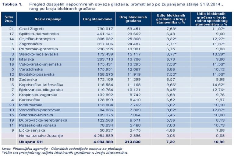 Podaci FINE: Prema broju blokiranih građana u odnosu na broj…
