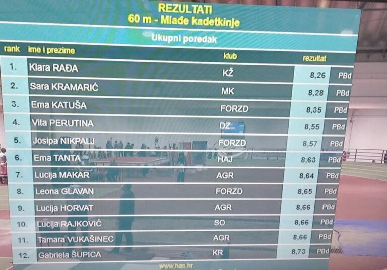 Klara Rađa najbrža je mlađa kadetkinja na 60 metara na…