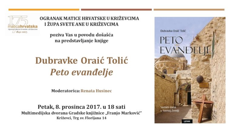 U Multimedijskoj dvorani Gradske knjižnice “Franjo Marković” u Križevcima večeras…